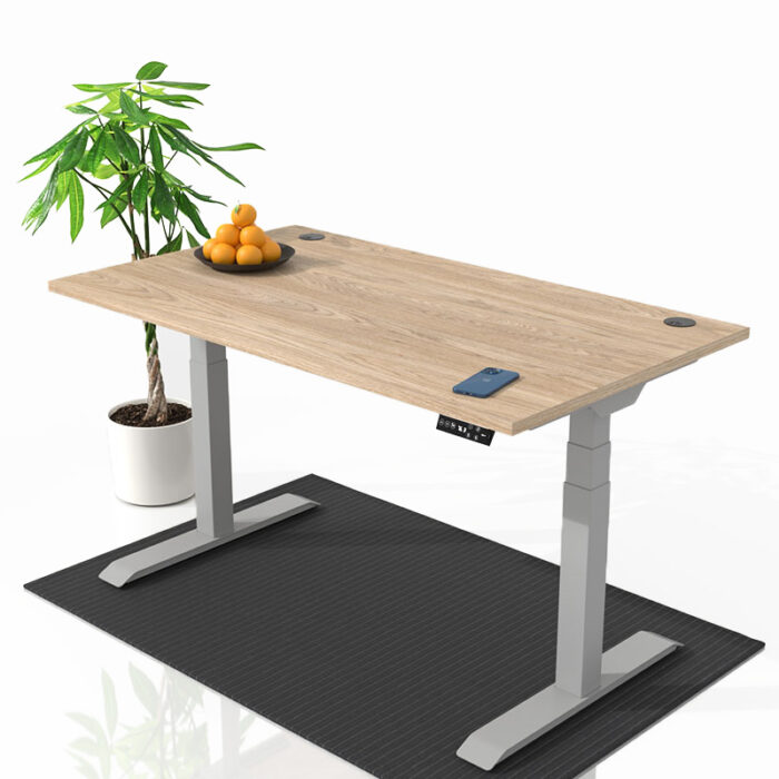 elektrischer-Schreibtisch grau basic mit heller Schreibtischplatte